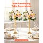 VEVOR Set di Vasi Decorativi da Matrimonio in Metallo 16 pezzi, Vasi Decorativi Centrotavola per Feste Eventi Banchetti Altezza 38 cm, Supporto per Composizioni Floreali per Decorazioni, Colore Oro