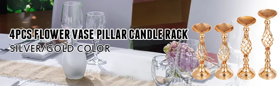 4 Kit Vaso Portafiori Per Matrimonio Portacandele Centrotavola Oro 40/47/53cm