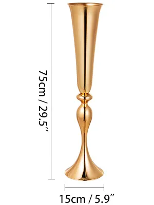 Liscio e pieno di lucentezza metallica, qui ti presentiamo un bellissimo centrotavola, questo vaso alto per fiori è glamourmente modellato in un design moderno.