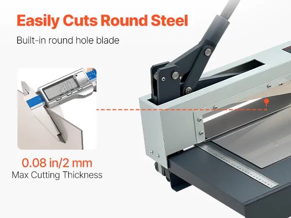 Taglio ad alta efficienza: questa cesoia per metalli può gestire facilmente materiali più grandi, con una lunghezza di taglio massima di 12,01 pollici/305 mm, uno spessore di 0,08 pollici/2 mm e un diametro dell'acciaio tondo di 0,08 pollici/2 mm