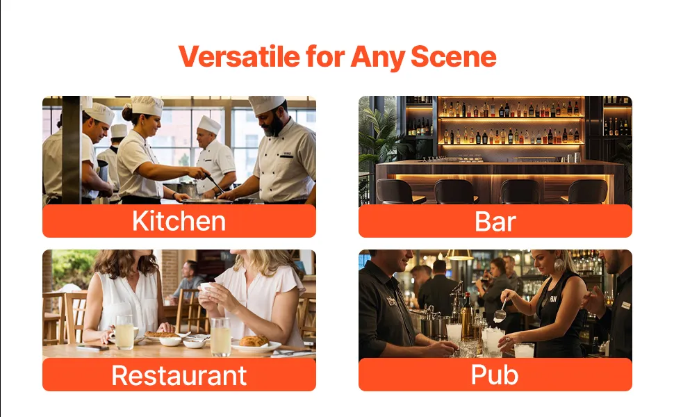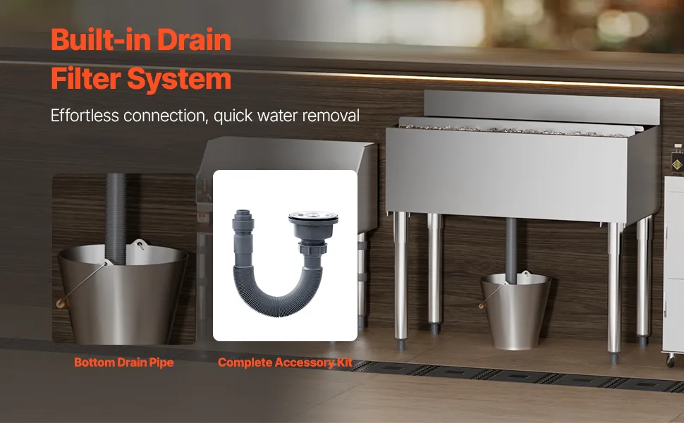 Paraschizzi antipolvere e antispruzzo: con i suoi 3,9 pollici/100 mm, il paraschizzi del nostro contenitore per ghiaccio commerciale sottobanco offre una protezione essenziale, impedendo alla polvere e agli schizzi di raggiungere pareti e pavimenti e mantenendo tutto pulito e asciutto