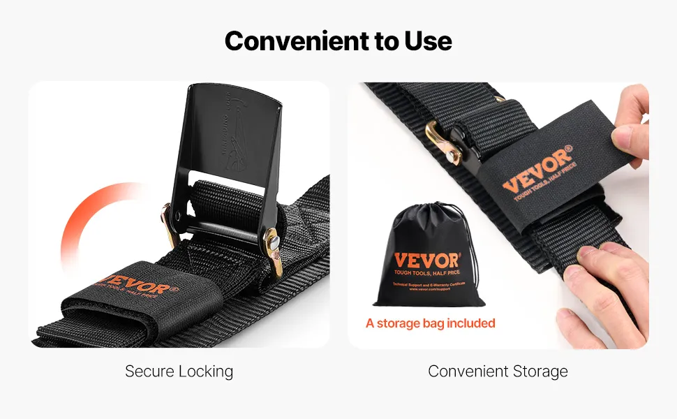 Facile da riporre: il design del cinturino in velcro aiuta a riordinare il cinturino retrattile dopo l'uso, evitando grovigli. La chiusura in velcro aumenta i punti di carico, rendendo il carico sicuro e stabile, garantendo al contempo uno stoccaggio facile e veloce dopo l'uso