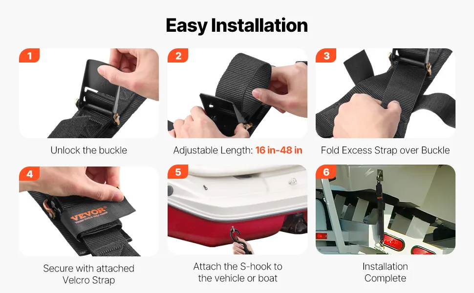 Fissaggio sicuro: le nostre cinghie a cricchetto retrattili da 2 pollici possono essere fissate con più giri per aumentare l'attrito ed evitare scivolamenti. Il gancio a S con una chiusura di sicurezza evita lo sganciamento accidentale, assicurando che la barca rimanga saldamente fissata durante il traino per evitare danni da urti