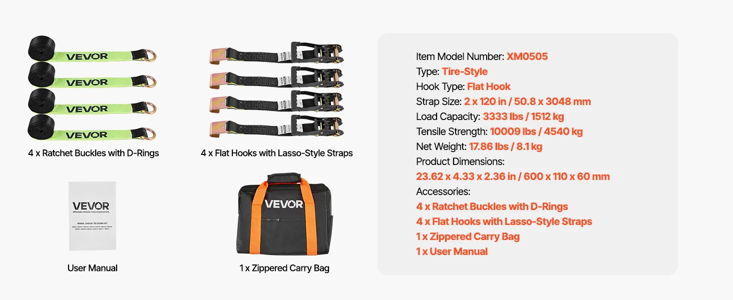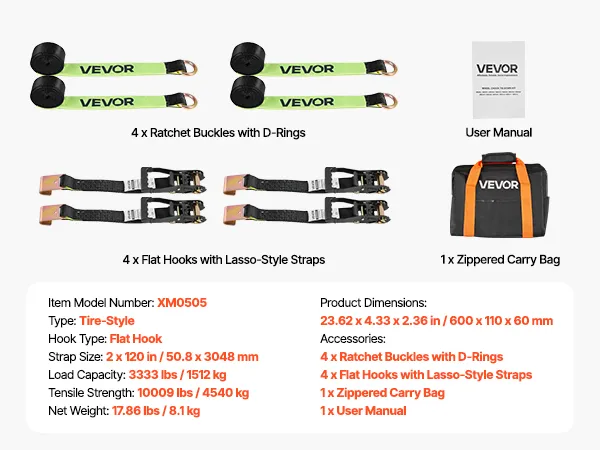 Compatibilità con più veicoli: come kit per pneumatici, la nostra cinghia a cricchetto è dotata di una cinghia larga 50,8 mm e lunga 3048 mm. Si adatta facilmente a diversi veicoli: fuoristrada, SUV, rimorchi e motoslitte