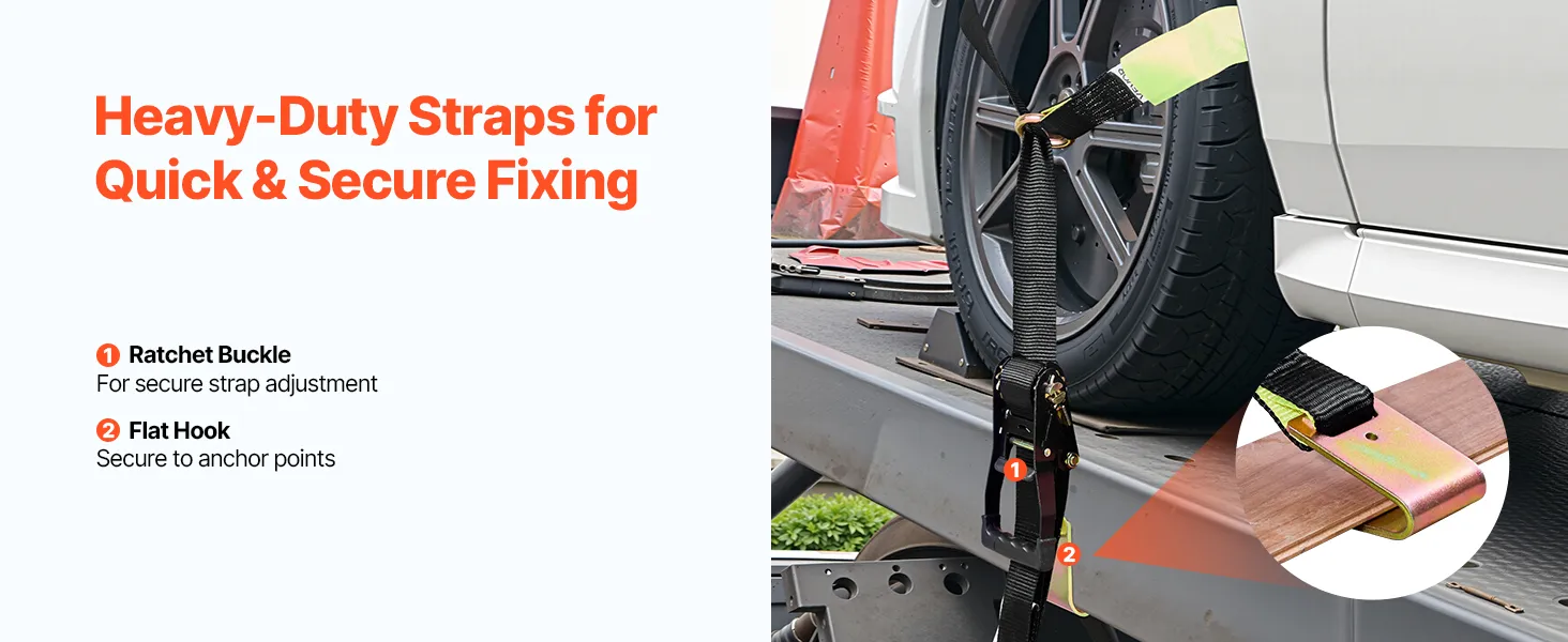 VEVOR Cinghie di Fissaggio per Ruote 50,8 x 3048 mm con Gancio Piatto Forza alla Trazione di 4540 kg, Sistema di Tensionamento per Pneumatici, Motociclette, SUV, Rimorchi, Nero