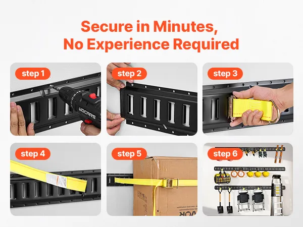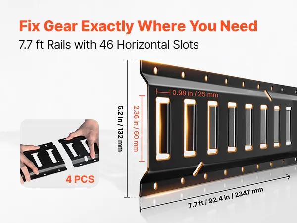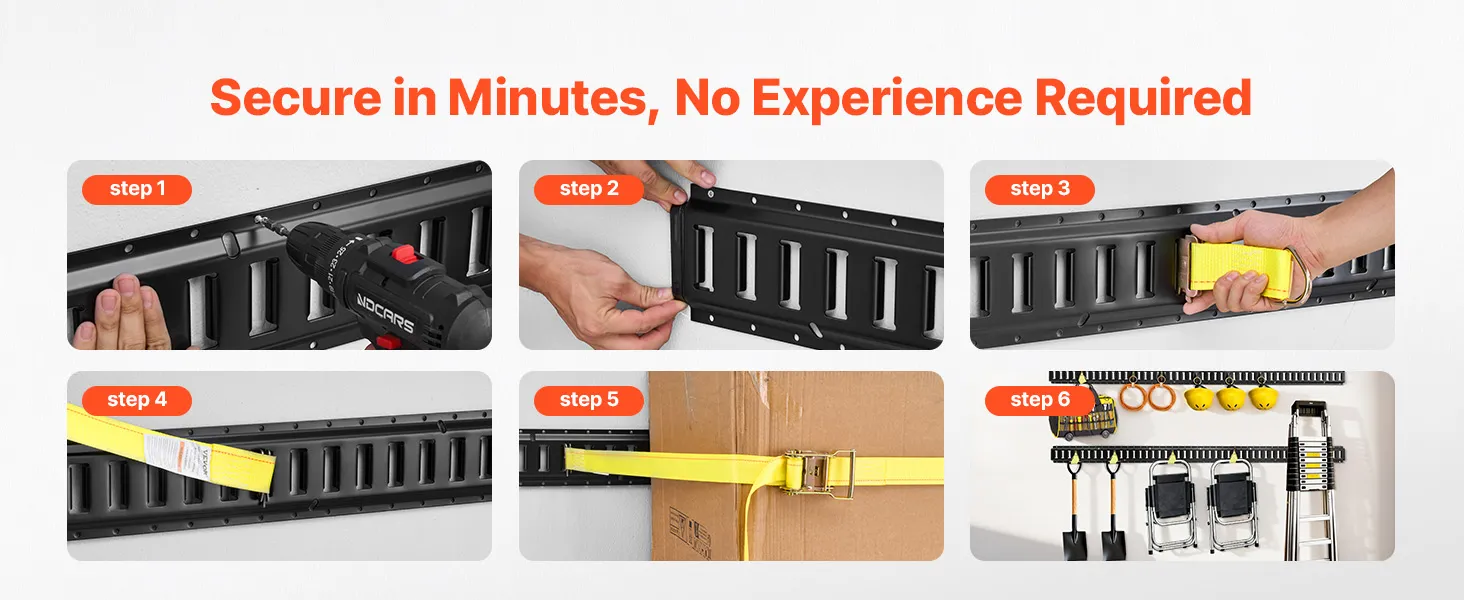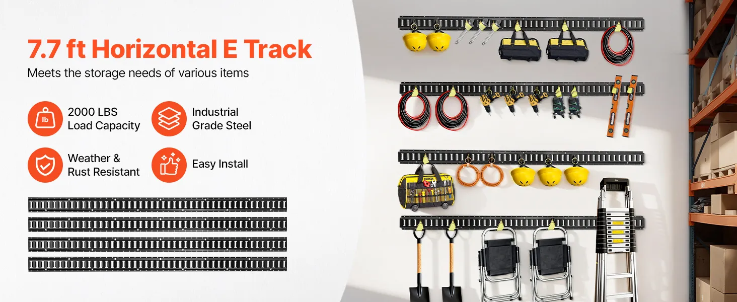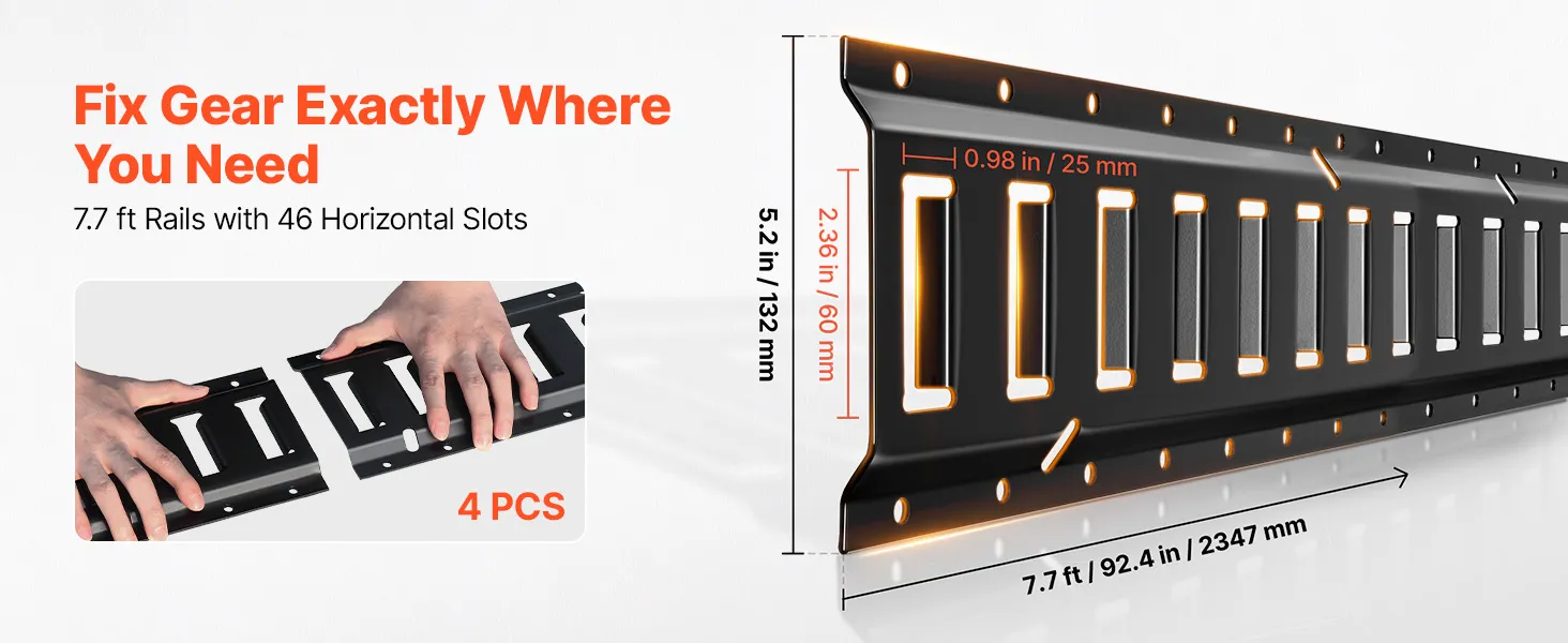 Installazione semplice: con 92 fori preforati, puoi montare le guide E-track, senza attrezzi particolari, senza oscillazioni, anche se è la tua prima installazione di archiviazione fai da te