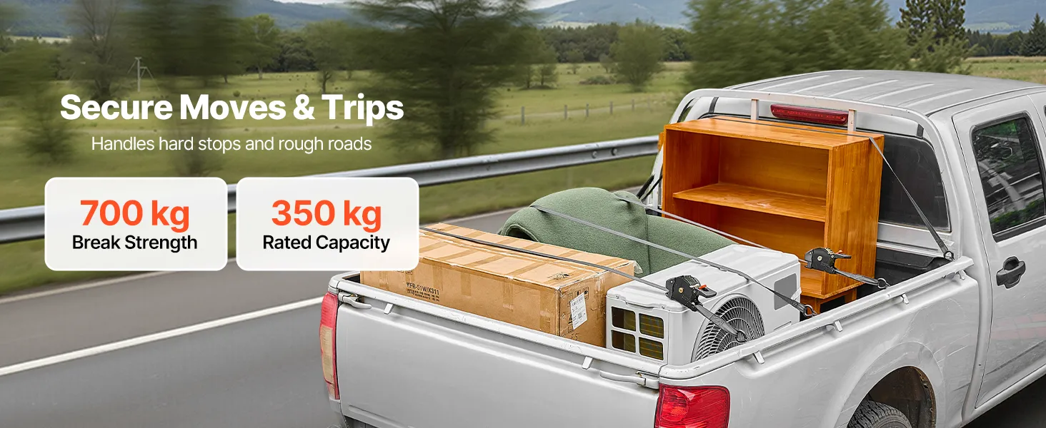 Elevati valori di carico: questa cinghia a cricchetto offre un carico di lavoro di 340 kg e una resistenza alla rottura di 700 kg, così la tua attrezzatura rimane al suo posto anche in caso di urti e urti. È una soluzione ideale per biciclette