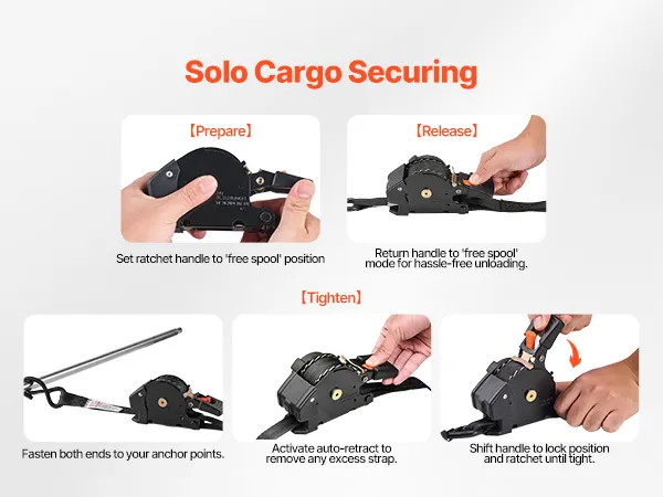 Puoi stringere i carichi in pochi secondi e viaggiare con facilità. Questa versatile cinghia a cricchetto blocca il carico su auto, camion o rimorchi e aiuta a ridurre le oscillazioni del carico dal vialetto di accesso alla destinazione.