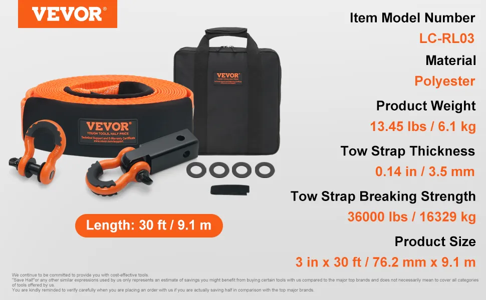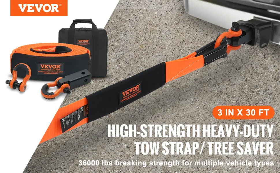La cinghia di traino per carichi pesanti in poliestere VEVOR è perfetta per molti veicoli. È adatta a camion, veicoli fuoristrada e attrezzature pesanti. Che tu stia trainando una barca o un ATV, questa cinghia può gestirlo. La resistenza alla rottura di 36.000 libbre ti assicura di poter trainare con sicurezza. Questa cinghia ha una lunghezza di 30 piedi e una larghezza di 3 pollici. Pertanto, è versatile. Dai SUV ai pick-up, la cinghia di traino soddisfa tutte le tue esigenze. Dovrebbe essere la scelta affidabile per due situazioni. Con il suo design robusto, ti garantiamo che non ti deluderà.