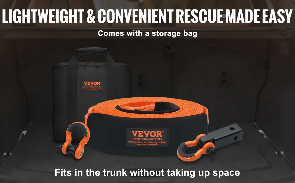 Kit cinghia di traino per carichi pesanti: con un'impressionante resistenza alla rottura di 36000 libbre / 16329 kg, la nostra cinghia di traino è perfetta per il traino di camion, veicoli fuoristrada e attrezzature pesanti.