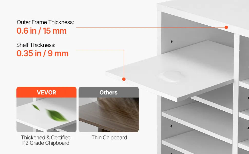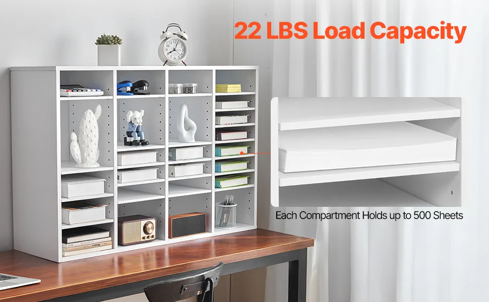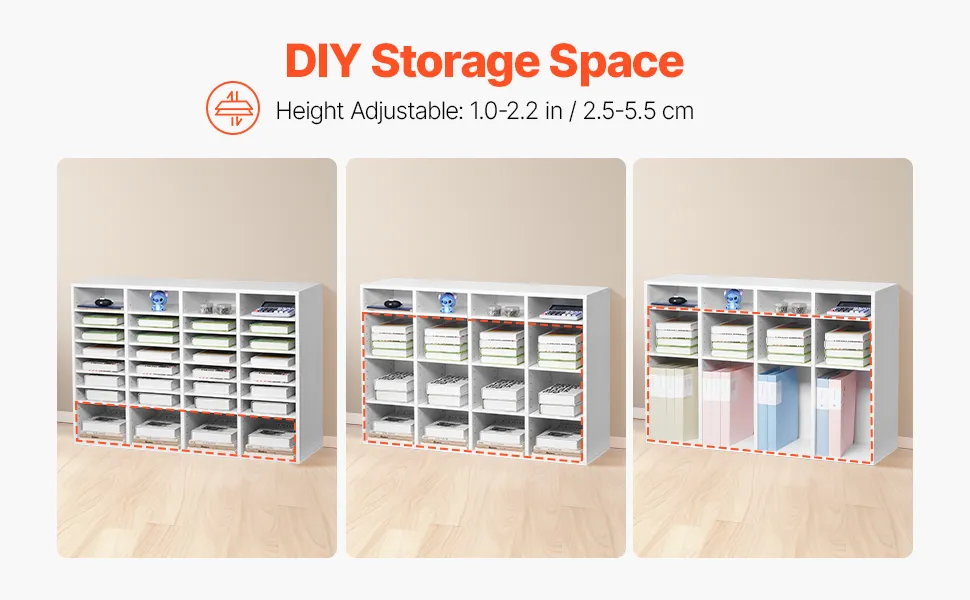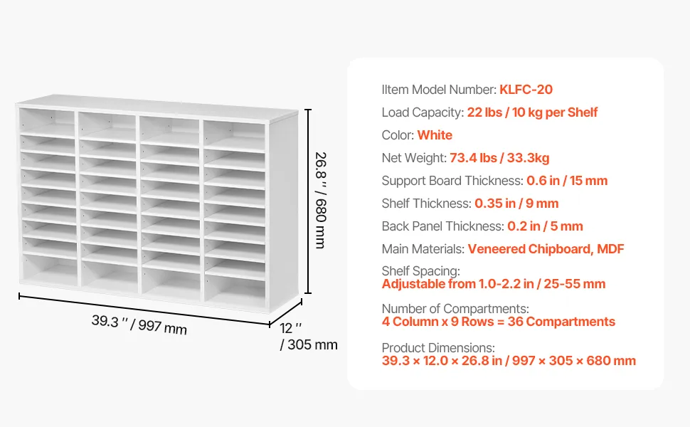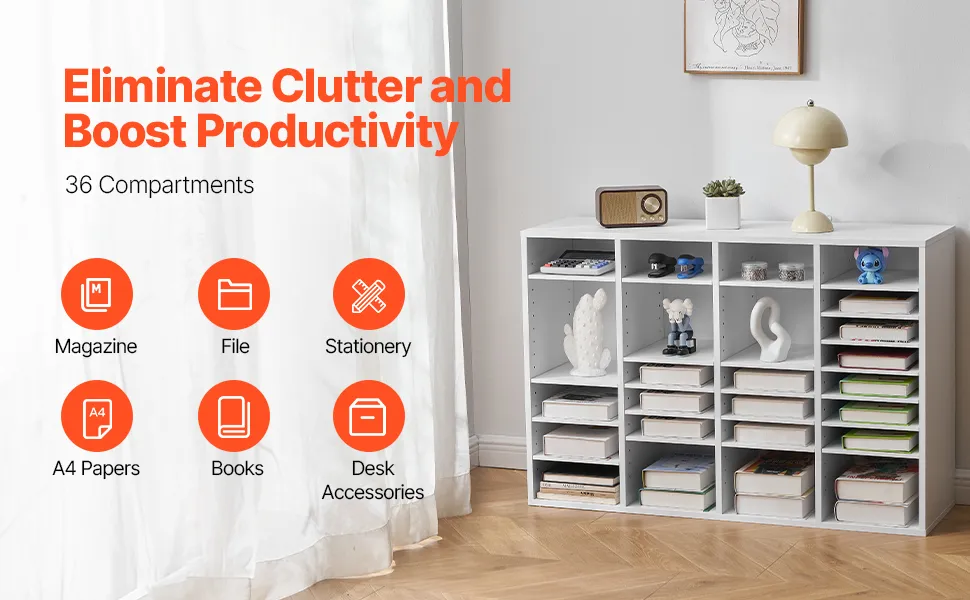 VEVOR Organizzatore per Letteratura, con 36 Scomparti e Ripiani Regolabili, Vassoio per Lettere con Raccoglitore di File Portadocumenti in Truciolare e MDF, Portaoggetti per Aula Ufficio, Bianco