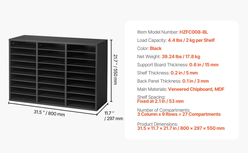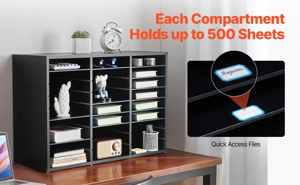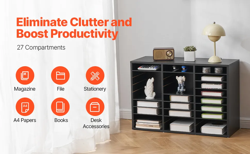 VEVOR Organizzatore per Documenti, Cassetta Postale con 27 Scomparti, Smistatore con Ripiani Rimovibili, Organizzatore di Letteratura in Legno Truciolato per Ufficio File Carta, Documenti, Nero