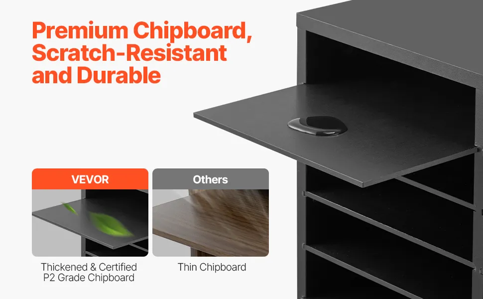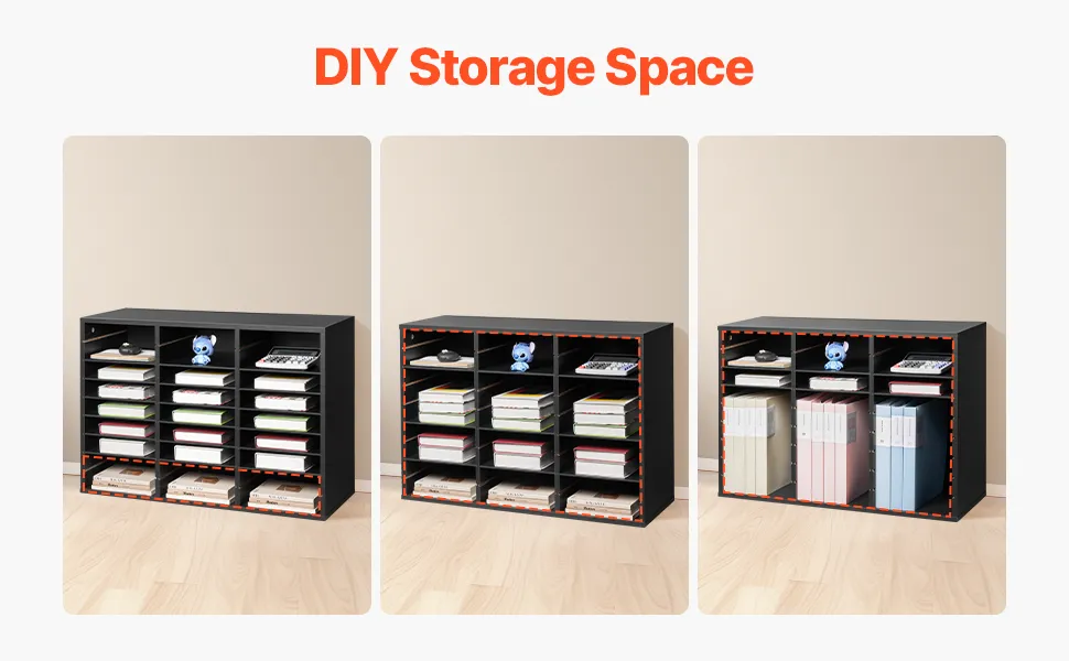 Personalizza il layout del tuo classificatore di file in legno rimuovendo i ripiani per sistemare file più grandi o forniture per ufficio. Questa flessibilità ti consente di organizzare e conservare articoli di varie dimensioni senza sforzo.