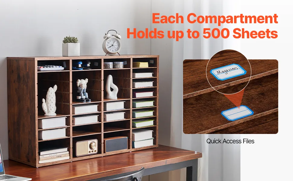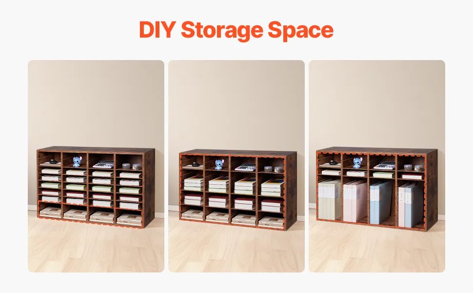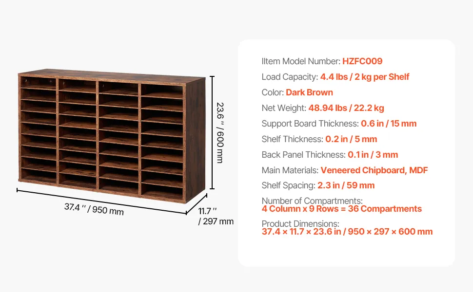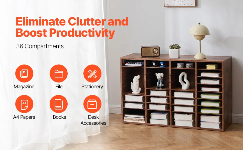VEVOR Organizzatore per Documenti, Cassetta Postale con 36 Scomparti, Smistatore con Ripiani Rimovibili, Organizzatore di Letteratura in Legno Truciolato per Ufficio File Carta, Marrone Scuro