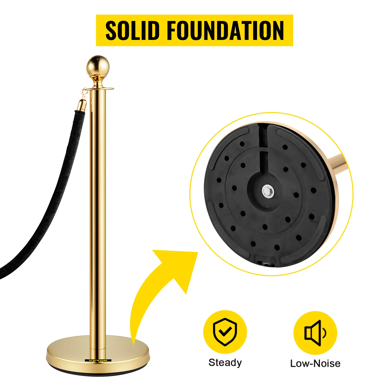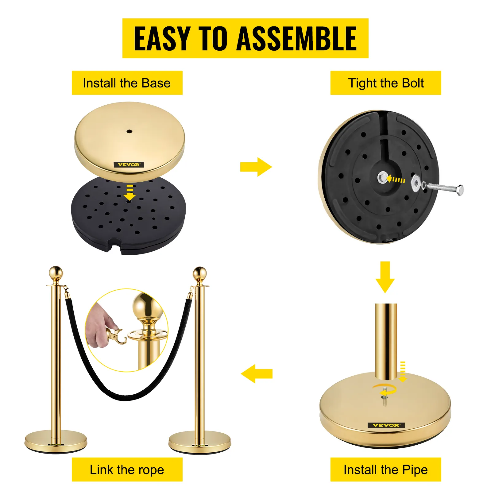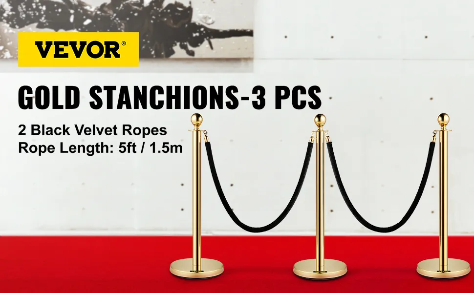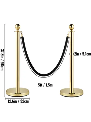 • Materiale Durevole: i montanti per il controllo della folla in oro sono costruiti con un palo in acciaio inossidabile 201 e una sfera in lega di zinco, che è durevole e non teme le alte temperature. Inoltre, questo materiale durevole è impermeabile e antiruggine per adattarsi all'interno e all'esterno.