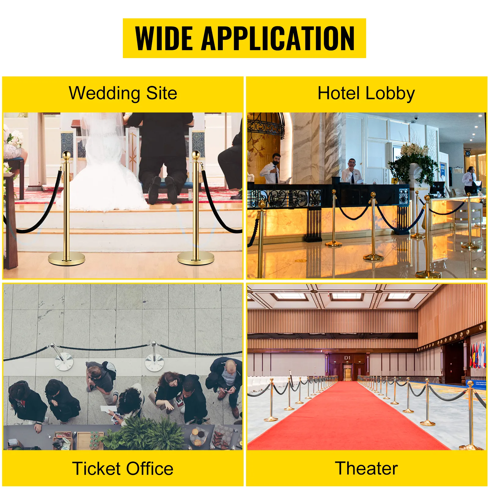• Ampiamente Usato: il nostro supporto in acciaio inossidabile è una buona scelta per il controllo della folla grazie alla sua alta qualità. Di conseguenza, è comunemente usato in teatri, hotel, casinò, eventi sul tappeto rosso, biglietterie, ecc.