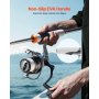 The reel in this fishing rod and reel combo features 7 + 1 ball bearings and a 5.2:1 gear ratio, ensuring smooth line retrieval without any hiccups. With 13.2 lbs/6 kg of smooth drag force, you can easily control the tension, handling everything from strong fish fights to smooth retrievals.
