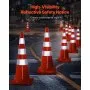 VEVOR traffic cones with 3 silver reflective collars for 360-degree visibility