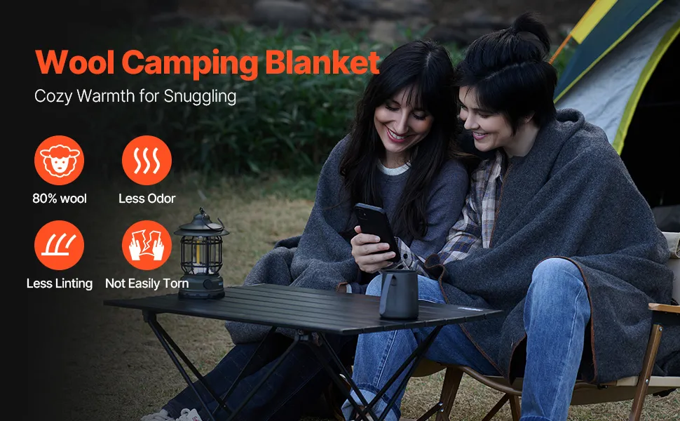 Caldo misto lana: questa coperta da campeggio è realizzata in un misto di 80% lana e 20% poliestere con un peso di ≥300 g al metro quadrato, che offre calore e resistenza, ed è adatta per le attività all'aperto con tempo freddo, come lo sci, la pesca dei granchi.