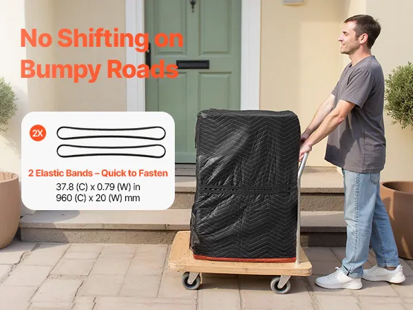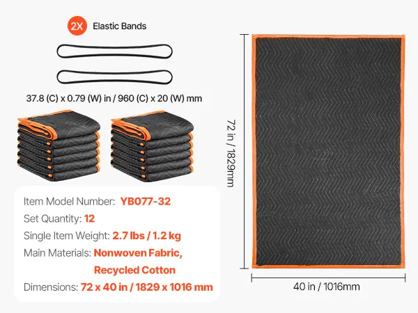 Set da 12 pezzi: include 12 coperte da imballaggio, adatte alle esigenze di famiglie o uffici durante il trasloco o lo stoccaggio di più oggetti. Include 2 elastici per fissare le coperte attorno ai mobili, impedendone l'allentamento o lo scivolamento
