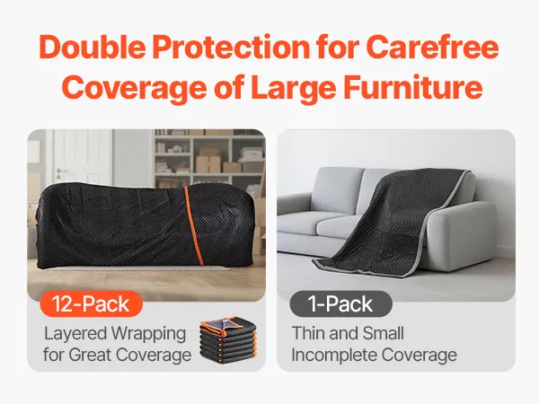 Dimensioni ideali: ogni coperta da spedizione misura 1829 x 1016 mm, ideale per coprire sedie, comodini, piccoli elettrodomestici e mobili di medie e piccole dimensioni. Con un peso di soli 1 kg a pezzo, è leggera da usare anche da una sola persona