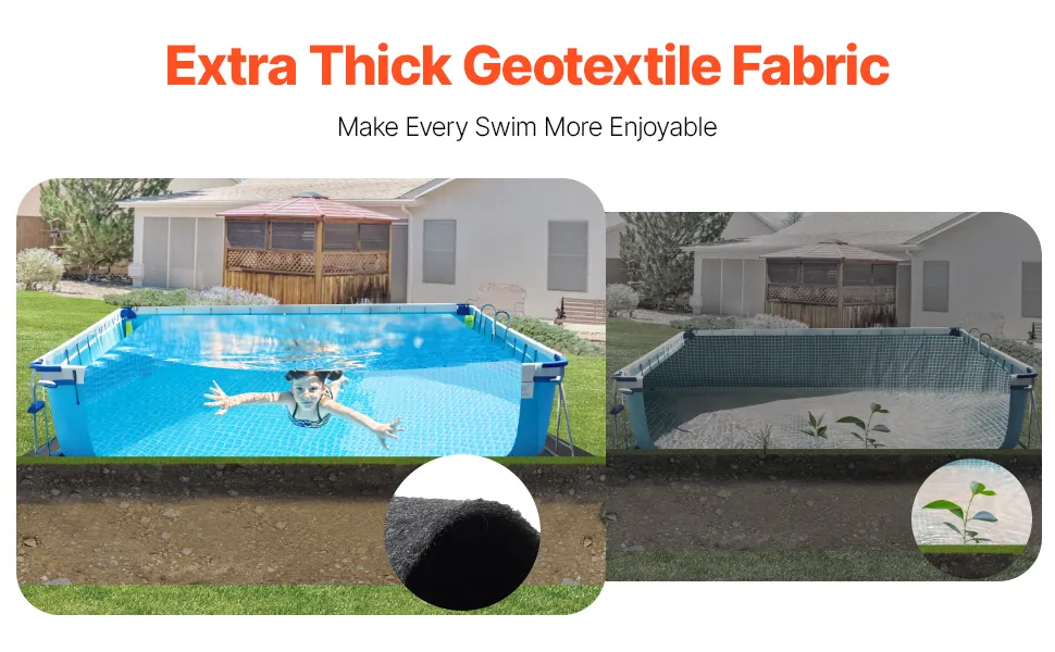 Extra-spesso per un'esperienza confortevole: realizzato in geotessile non tessuto extra-spesso e ad alta resistenza, questo rivestimento per piscina fuori terra offre un'eccellente ammortizzazione, rendendo la camminata confortevole