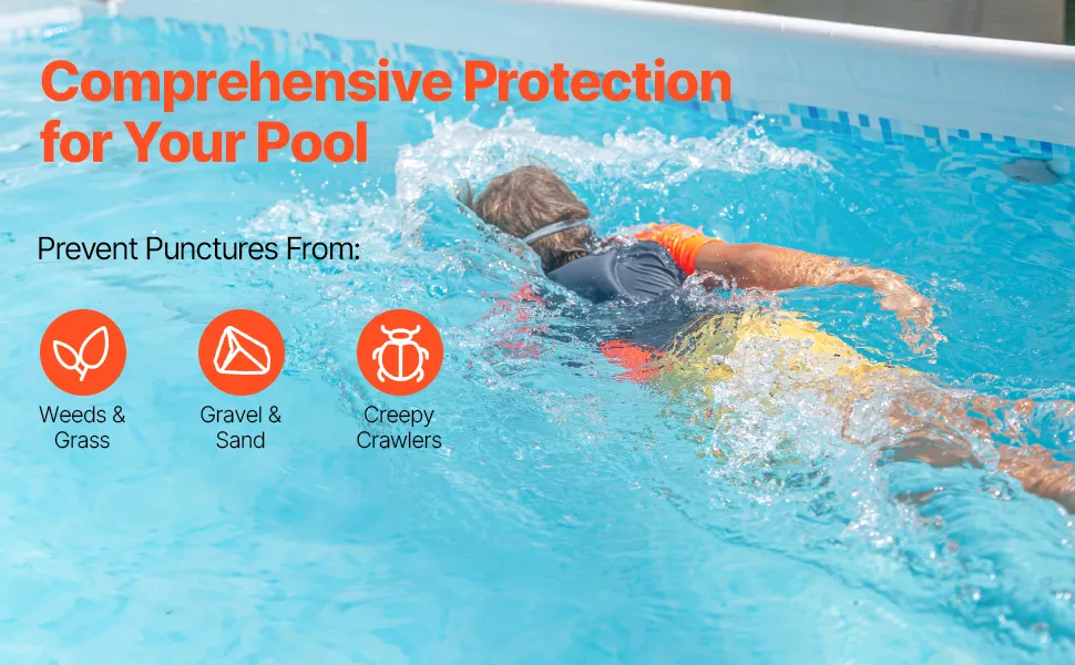 Rivestimento spesso per piscina: realizzato in materiale ad alta resistenza, questo rivestimento per piscina evita efficacemente i danni causati da oggetti appuntiti come rocce, radici degli alberi e vetri, prolungando la durata della piscina