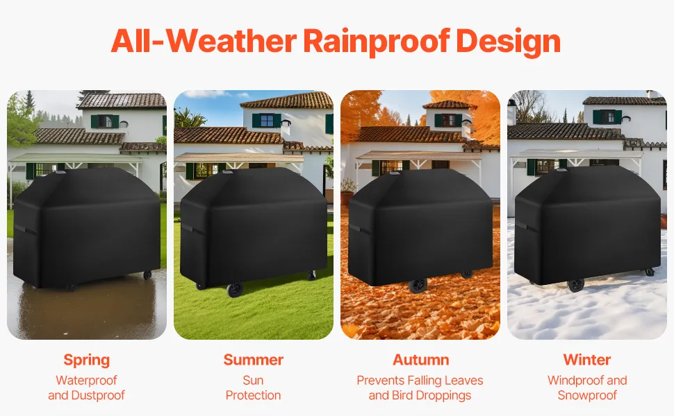 Questo sistema multistrato rende la copertura per barbecue adatta a tutte le stagioni, garantendo che la griglia rimanga pulita e asciutta tutto l'anno, indipendentemente dalle condizioni atmosferiche.