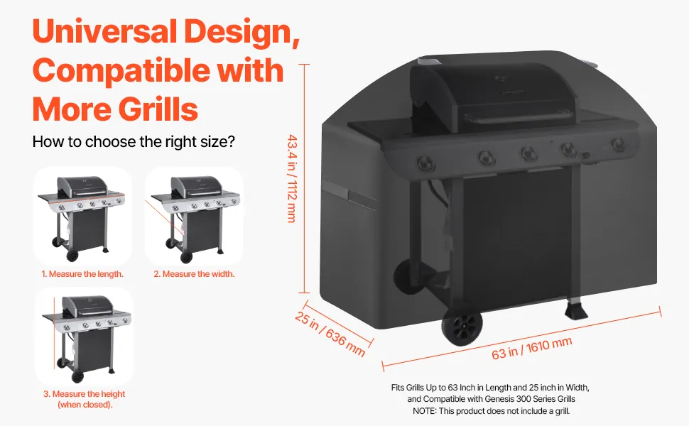 Ampia compatibilità dimensioni: la dimensione della griglia a gas per barbecue è 63x25x43,4 pollici. La copertura universale per griglia si adatta alla maggior parte delle griglie. NOTA: questo prodotto non include una griglia