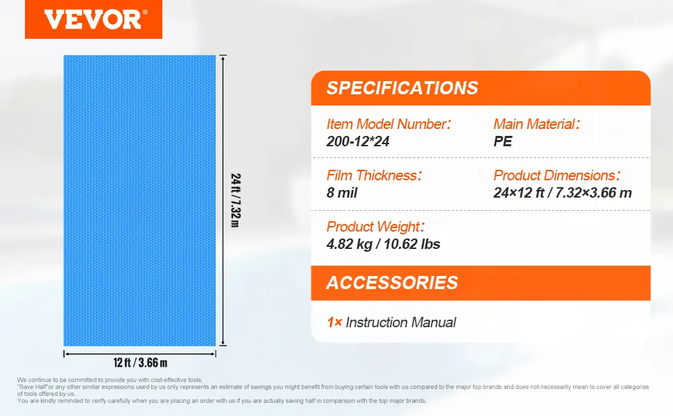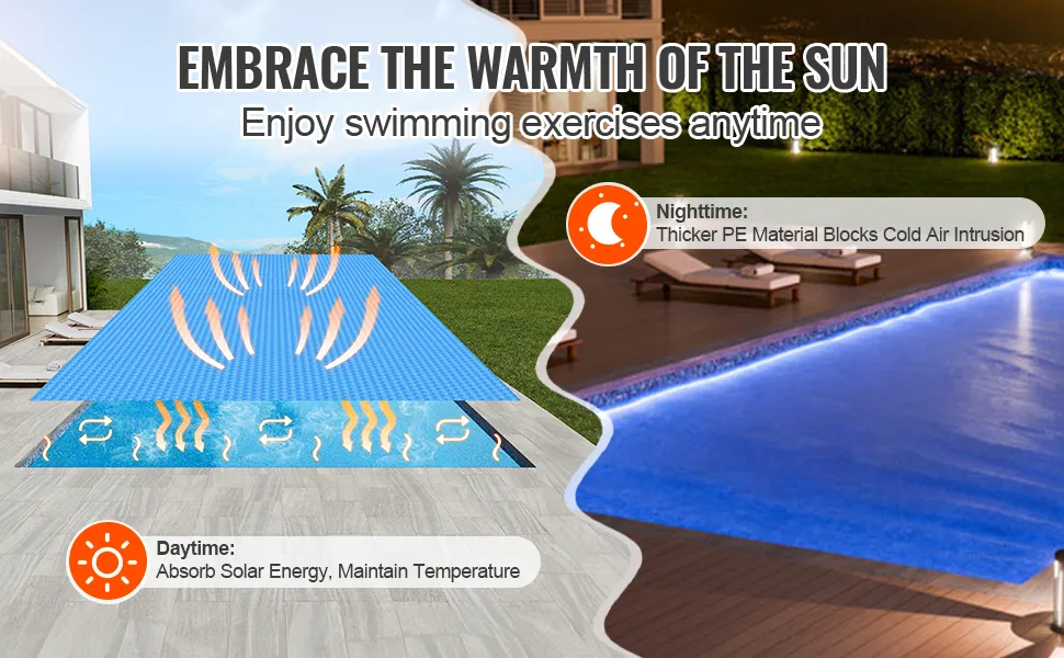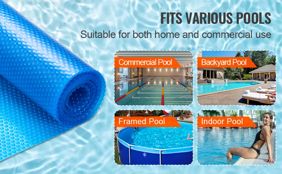 È così versatile che la copertura solare per piscine VEVOR può essere utilizzata sia per piscine interrate che fuori terra. Questa caratteristica la rende adatta a vari tipi di piscina. È progettata per soddisfare le esigenze di diversi proprietari di piscine. La copertura è facile da adattare a diverse forme e dimensioni di piscina. Ottieni prestazioni costanti indipendentemente dal tipo di piscina che stai utilizzando. Che tipo di coperta solare sostituisce questa coperta solare? Tutti gli utenti di piscine dovrebbero usare la nostra coperta solare, il che significa che la tua piscina rimane calda e pronta all'uso.