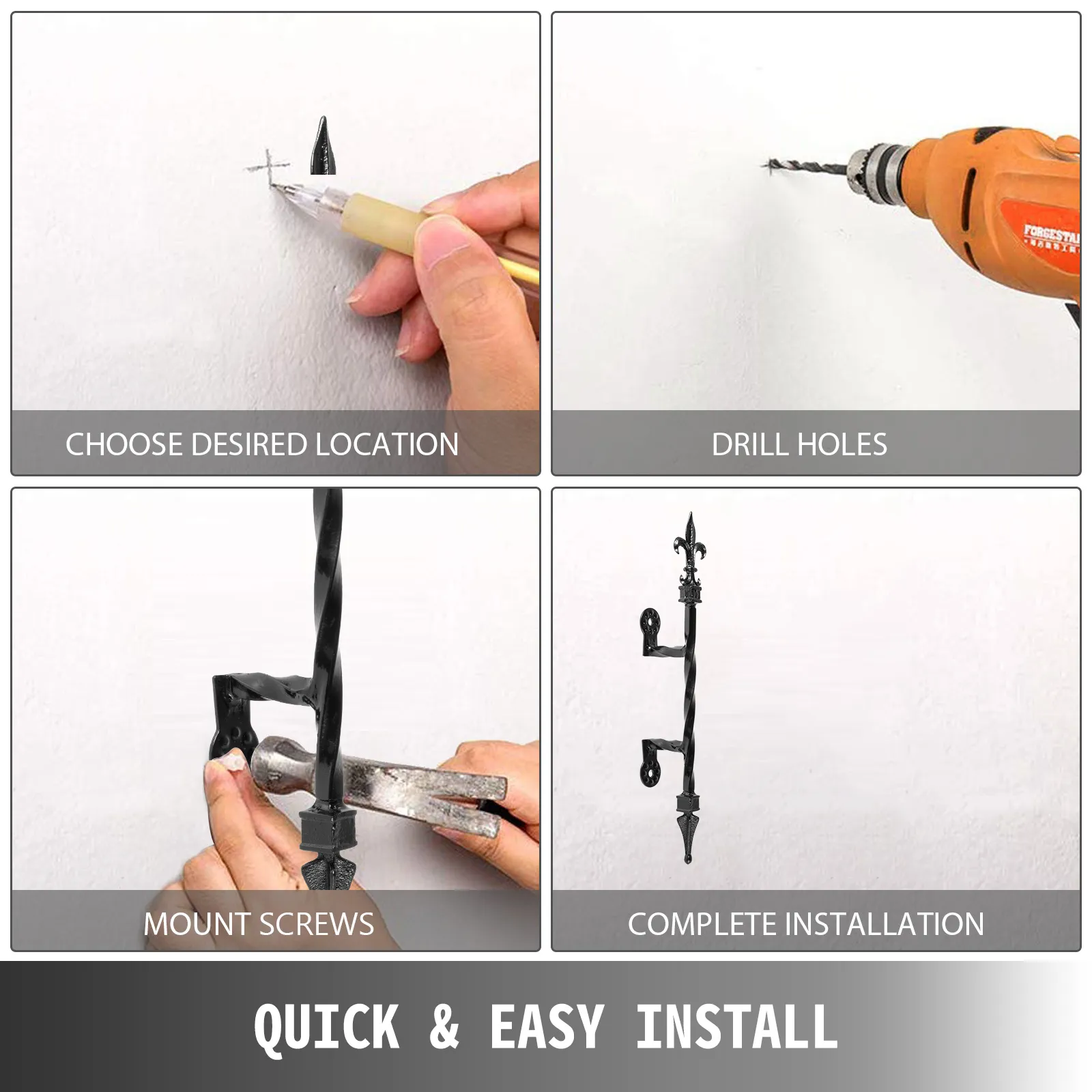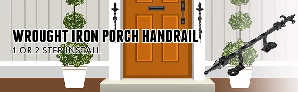 Questo corrimano per scale in ferro battuto è eccellente per 1 o 2 gradini quando è possibile collegarlo a una struttura o un palo.