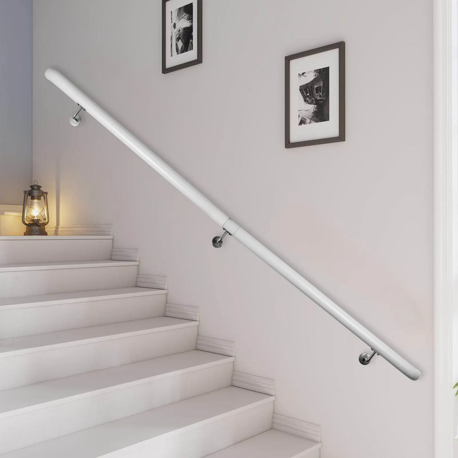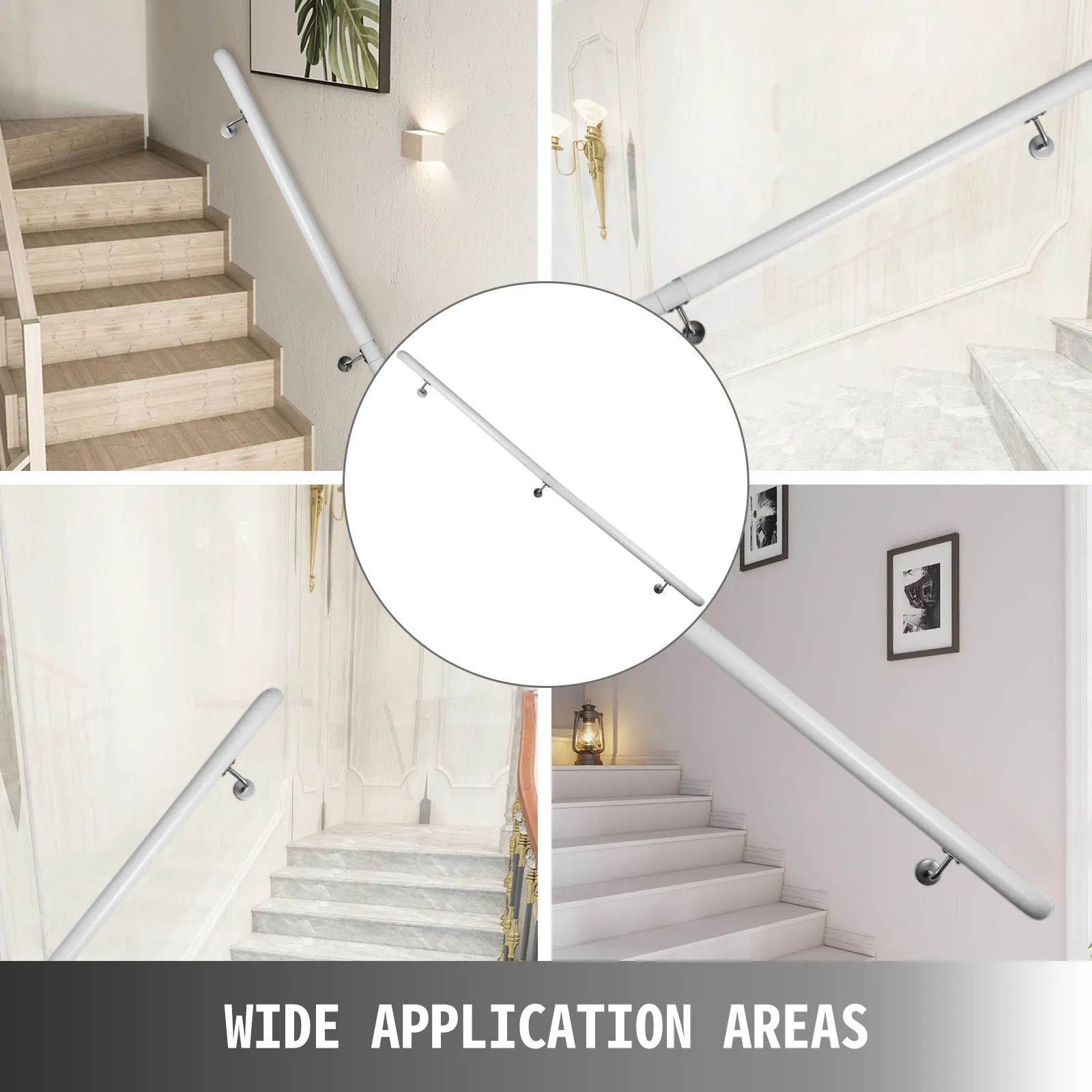 Questo prodotto lungo 6 piedi ha staffe da parete in acciaio per fissare saldamente le ringhiere delle scale. È preforato e richiede meno tempo per il montaggio.