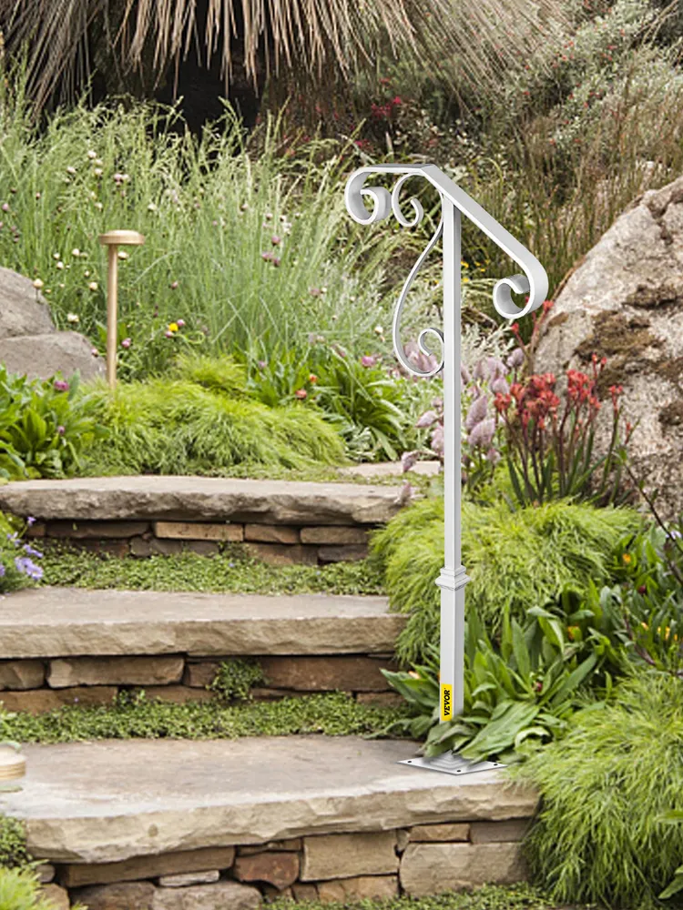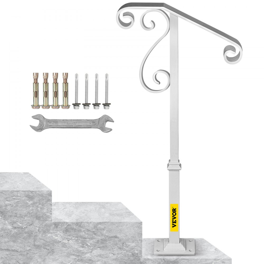 Questo corrimano bianco opaco è un corrimano ornamentale a montante singolo che si adatta a 1 o 2 gradini per le scale. Adottato in acciaio saldato, pergamene forgiate a mano e tecnologia di verniciatura a polvere, questa ringhiera a montante singolo è un elegante corrimano che offre la massima sicurezza. Adatto a giardini, edifici residenziali, edifici per uffici commerciali, hotel, ecc.