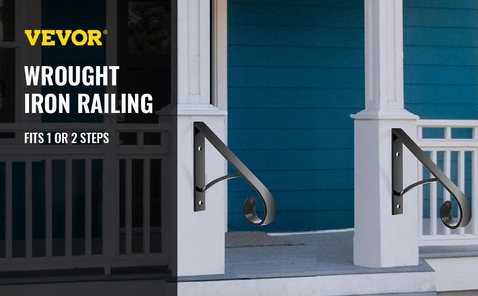 • 【MATERIALE PREMIO】 - Dimensioni del prodotto: 14 x 11 x 10"; Peso del prodotto: 5,5 libbre; Il corrimano in ferro battuto nero è costruito con una piastra di ferro ultra resistente e antiruggine.