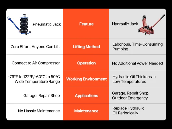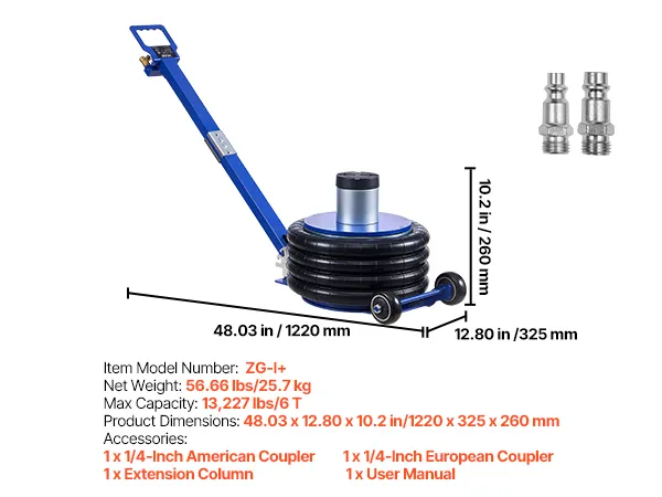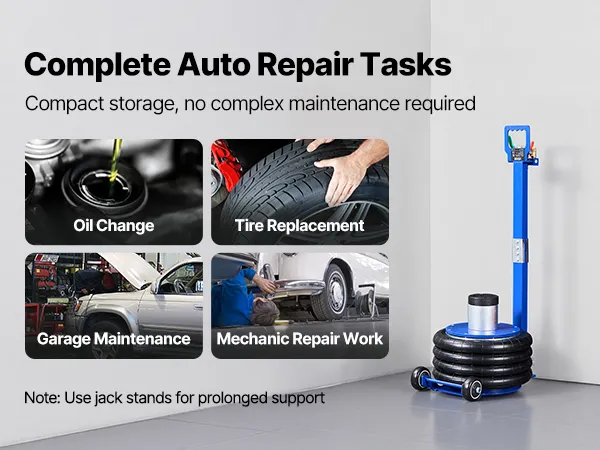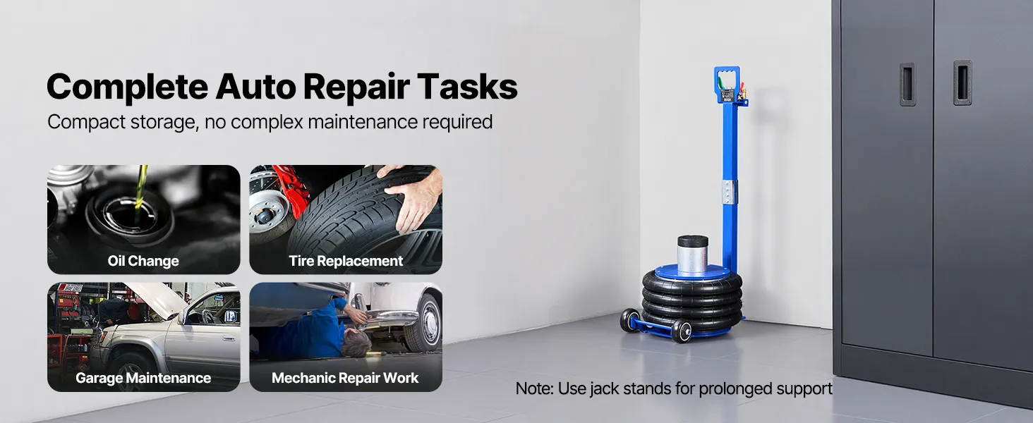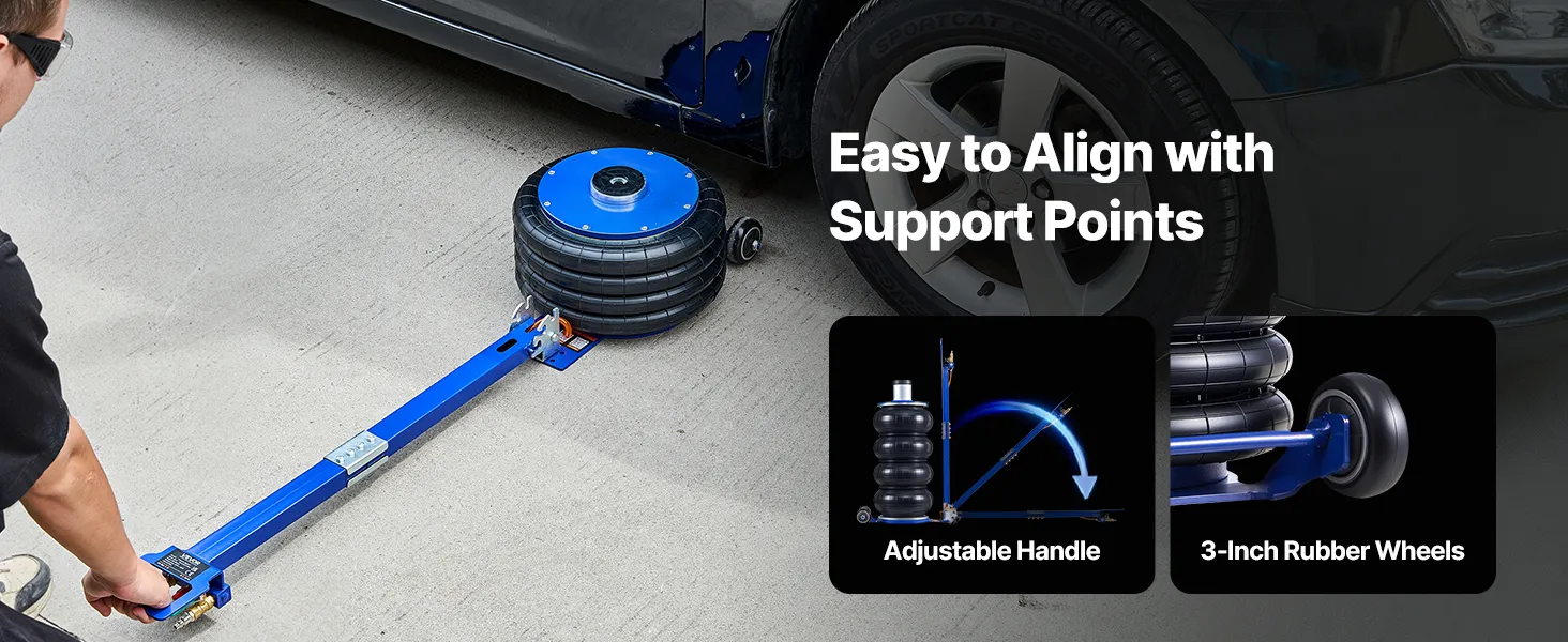 Il cric pneumatico è caratterizzato da una struttura ad alta resistenza, che fornisce un supporto sicuro anche per veicoli pesanti. È ideale per berline, SUV e altri veicoli, garantendo un sollevamento sicuro e uniforme in ogni occasione.