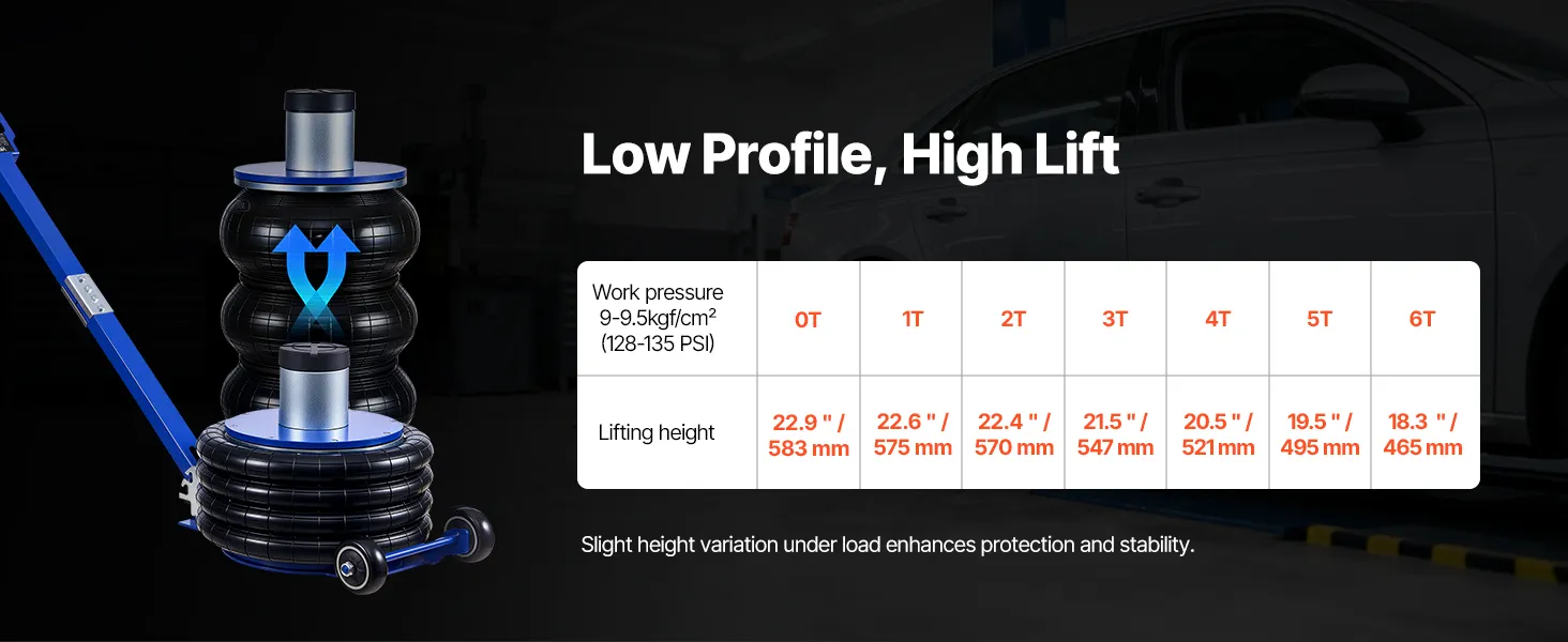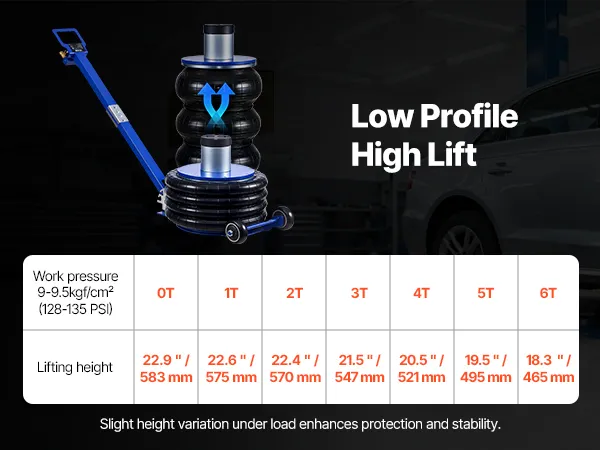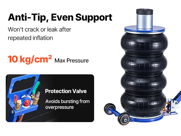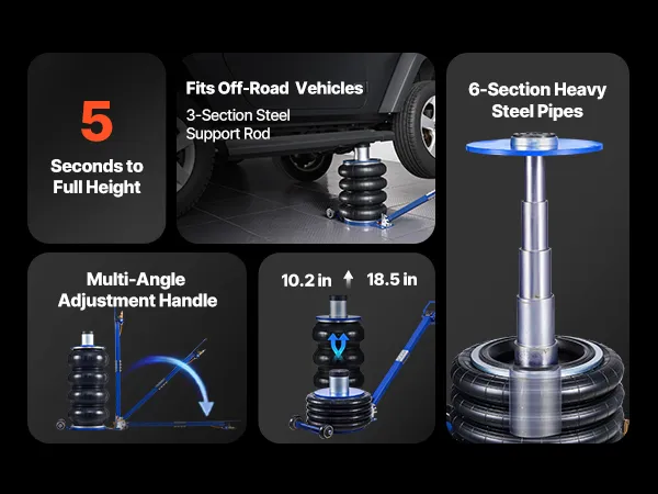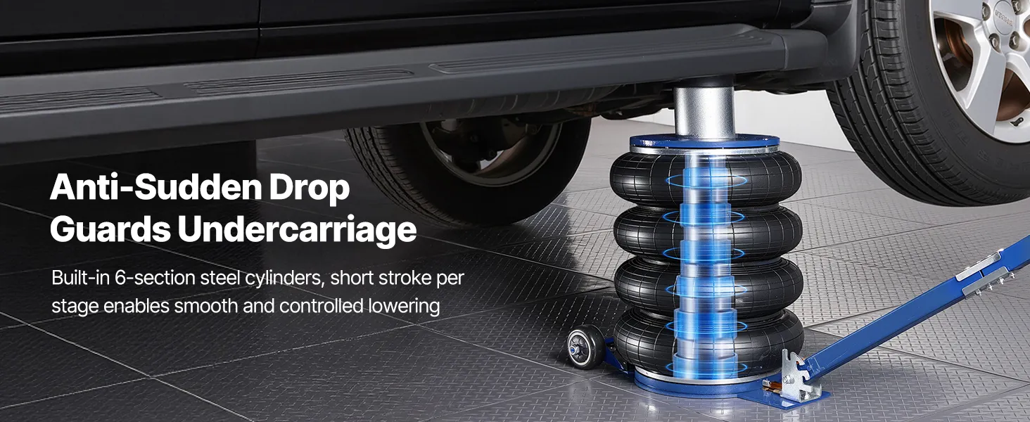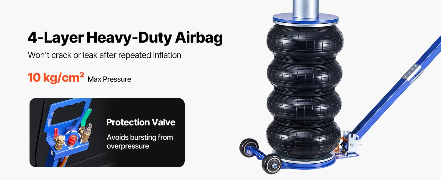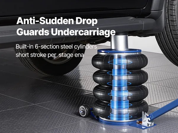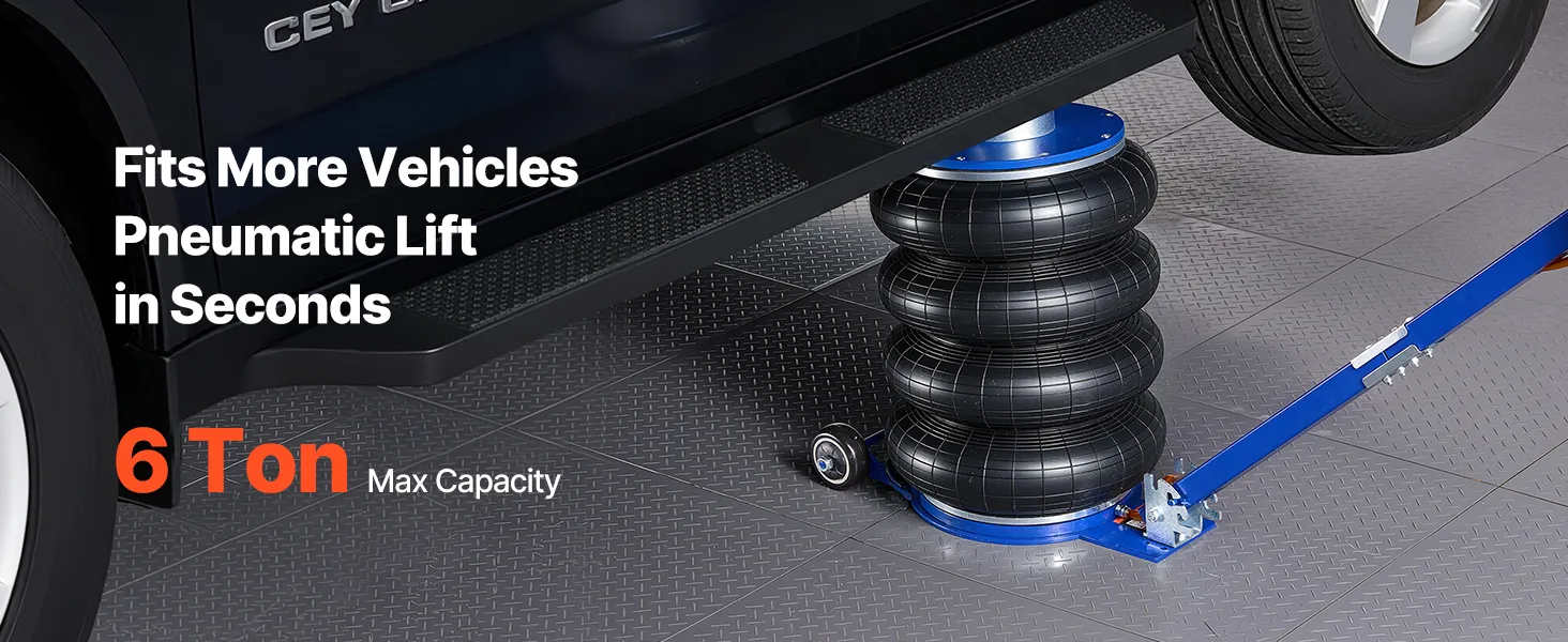 Capacità di sollevamento di 6 tonnellate: questo cric con sospensioni pneumatiche può sollevare fino a 6 tonnellate (13.227 libbre) ed è adatto a berline, SUV e camion. I soffietti rinforzati a quattro strati con sospensioni pneumatiche