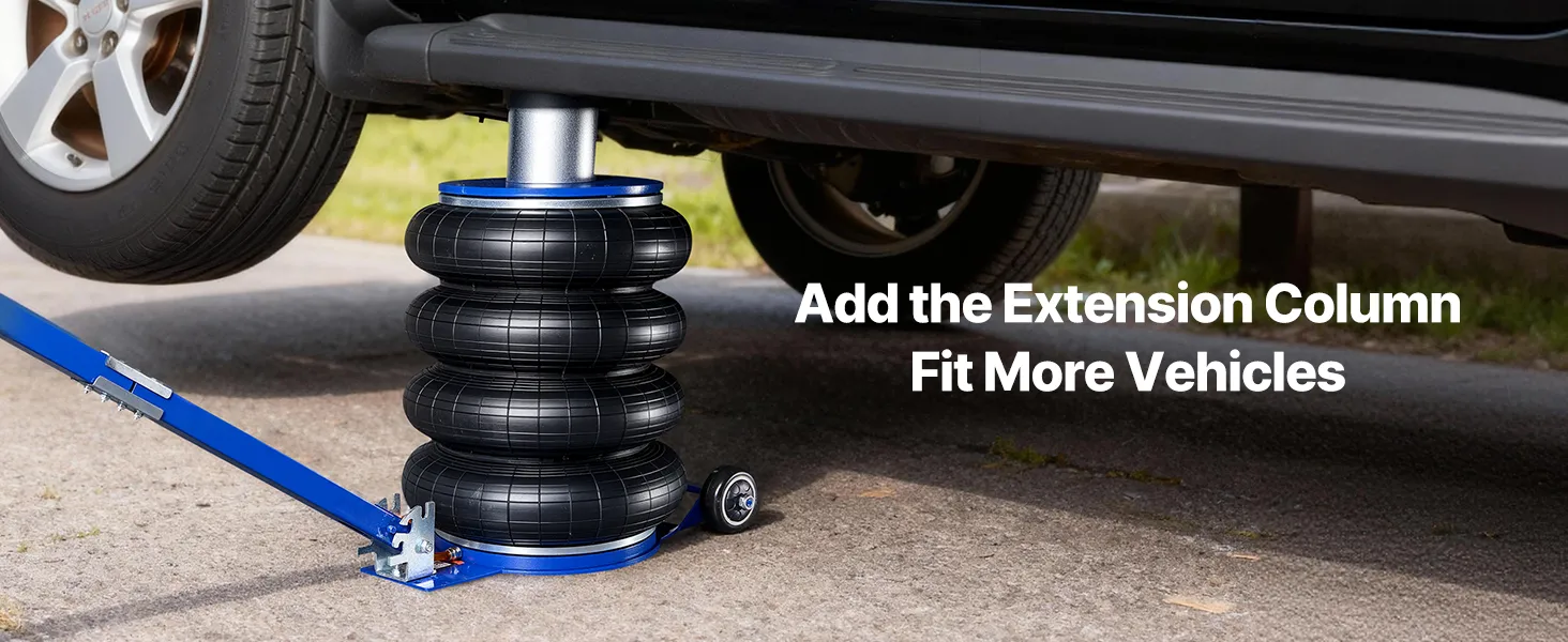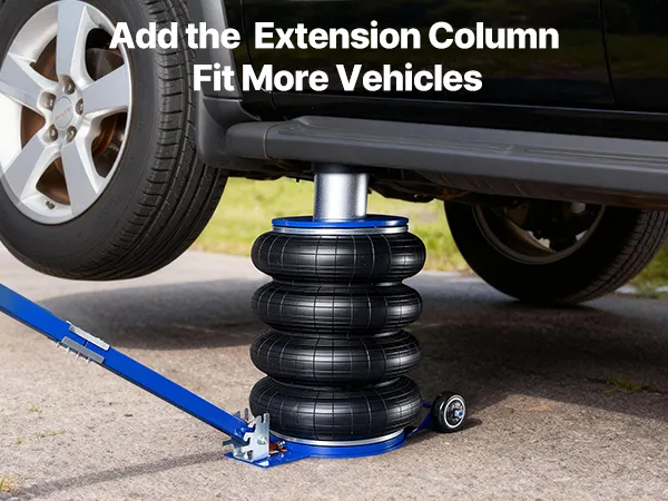 Adatto a più veicoli: il cric pneumatico è dotato di una colonna di prolunga aggiuntiva. Senza la colonna, l'altezza di sollevamento è di 170–583 mm (6,7–23 pollici), mentre con la colonna è di 260–673 mm