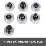 L'espansore per tubi idraulici ha 7 dimensioni della testa dell'espansore per tubi tra cui scegliere: 3/8", 1/2", 5/8", 3/4", 7/8", 1", 1-1/8".