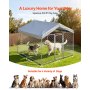 Spazio extra-large: La gabbia esterna per cani da 2 x 2 x 1,6 m offre spazio per correre, vagare e rilassarsi, come un ampio "appartamento" all'aperto. Nota: Per una maggiore protezione, puoi installare una copertura a rete sopra l'area del tetto aperto per evitare che il tuo cane salti fuori