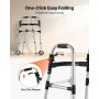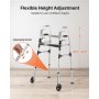 VEVOR Deambulatore Pieghevole per Anziani a 2 Pulsanti con Ruote da 127 mm e Altezza Regolabile su 8 Livelli, Ausilio per la Deambulazione in Alluminio Leggero con Portata di 158 kg, per Adulto