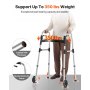 Telaio robusto, supporto affidabile: realizzato in alluminio con spessore della parete del tubo di 1,25 mm, ausilio per la deambulazione leggero supporta fino a 158 kg, offrendo stabilità affidabile e una migliore mobilità quotidiana per anziani
