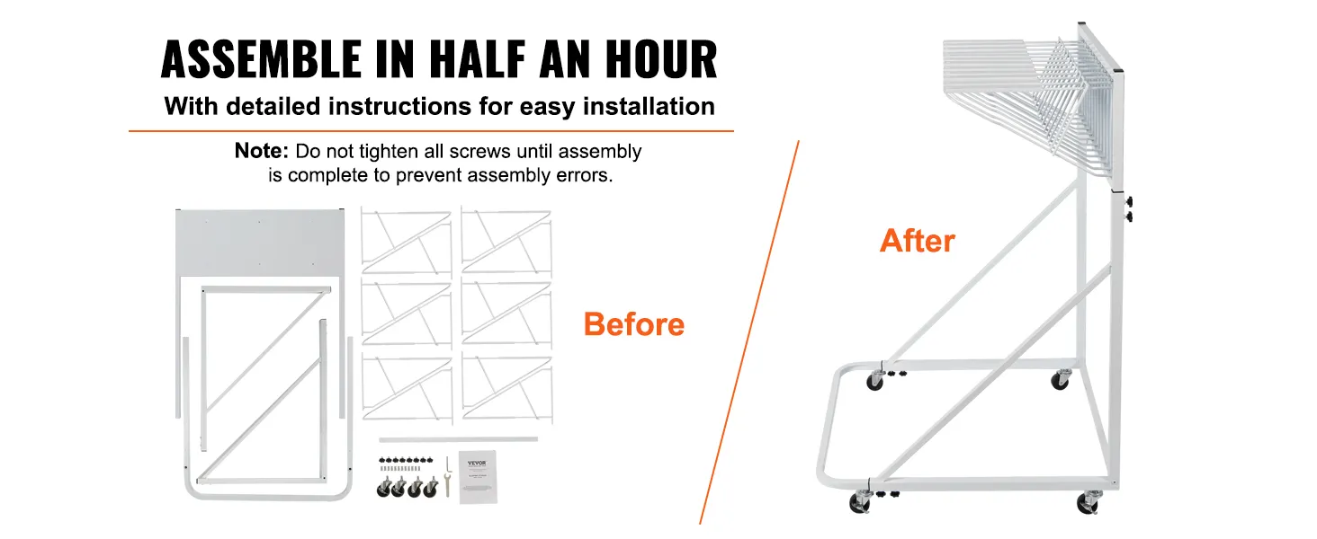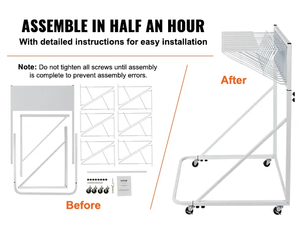 L'installazione del rack di archiviazione mobile VEVOR è semplice. Include tutti i componenti necessari e istruzioni chiare. Non sono richiesti utensili aggiuntivi per l'assemblaggio. Puoi avere il rack pronto all'uso in appena mezz'ora, consentendoti di iniziare a organizzare rapidamente i tuoi documenti. Questo semplice assemblaggio fa risparmiare tempo e fatica. La configurazione semplice lo rende comodo da usare per chiunque. Questa caratteristica pratica si aggiunge all'efficienza complessiva della soluzione di archiviazione.