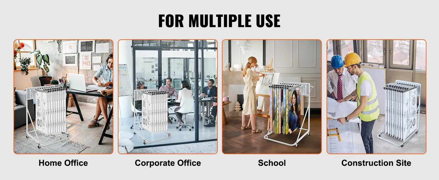 Il rack di archiviazione mobile per progetti VEVOR è ideale per più ambienti. È particolarmente utile in uffici, scuole e cantieri. Questo rack di archiviazione aiuta a mantenere il tuo spazio di lavoro organizzato ed efficiente. La sua mobilità consente un semplice trasporto tra varie sedi. Puoi lavorare ovunque da una sede all'altra. Questa caratteristica è fondamentale per i professionisti che hanno bisogno di accedere ai documenti in movimento. La solida struttura del rack garantisce la durevolezza anche in ambienti affollati. In risposta alle esigenze di vari contesti professionali, questo rack di archiviazione soddisfa le esigenze di tutti i tipi di organizzazioni o settori in cui potresti utilizzarlo efficacemente. La sua versatilità è uno strumento essenziale per la gestione dei documenti.