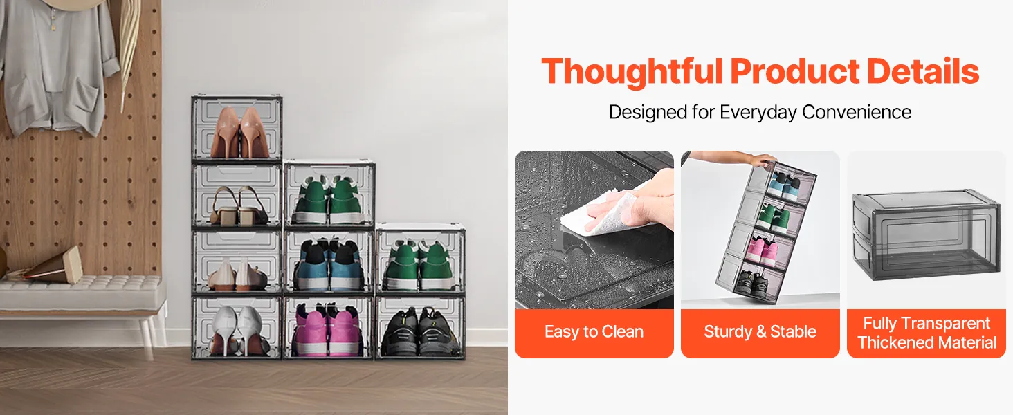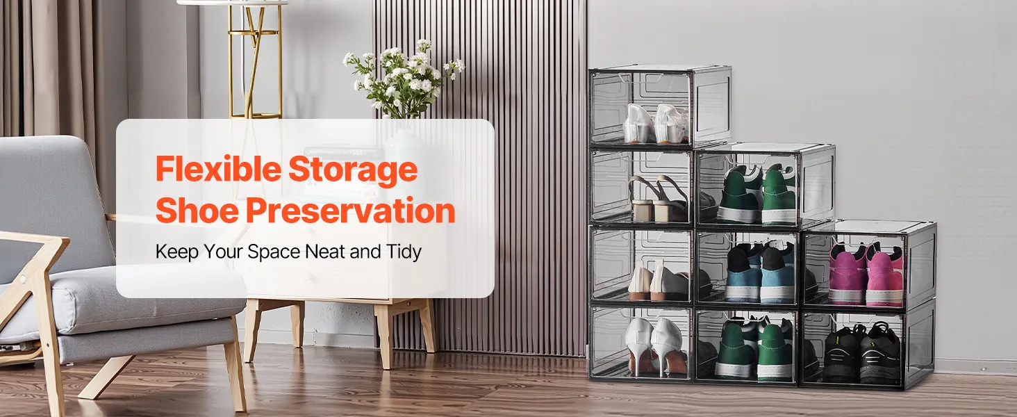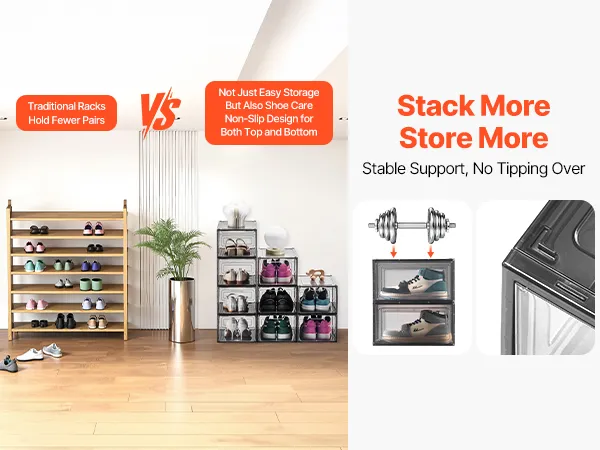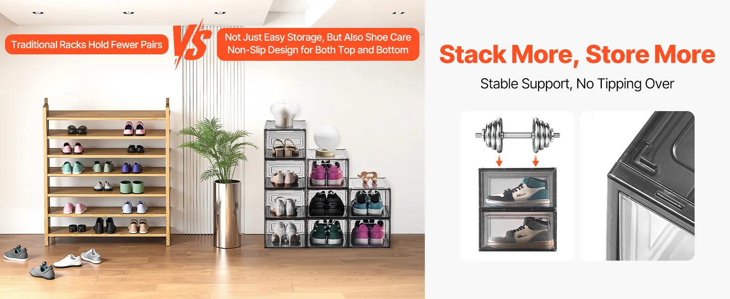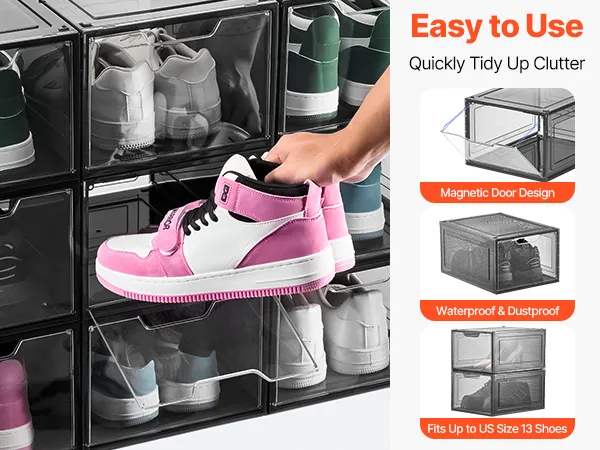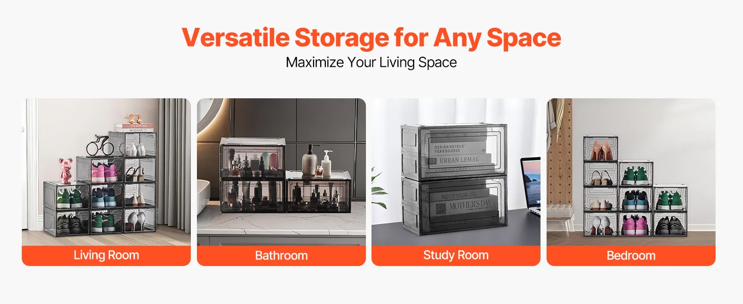 Ideali per vari spazi della casa, queste scatole per scarpe impilabili possono contenere non solo le scarpe, ma anche oggetti domestici sparsi, liberando prezioso spazio di stoccaggio.