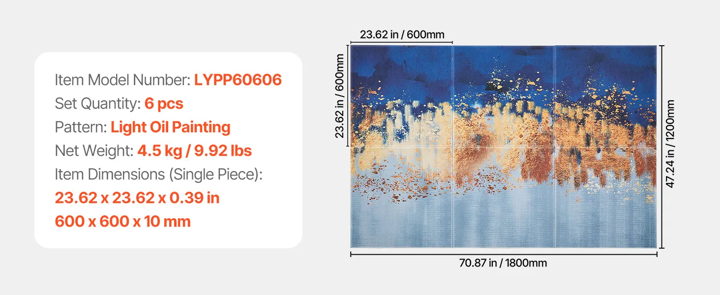 Uso flessibile: con un design con bordo smussato a 45° per un'installazione senza soluzione di continuità e senza spazi vuoti. Realizzati in fibra di poliestere facilmente tagliabile, questi pannelli possono essere realizzati in varie forme con il fai da te. Con un motivo moderno ed elegante, ogni scatola contiene 6 pezzi, dandoti la libertà di creare uno spazio personalizzato