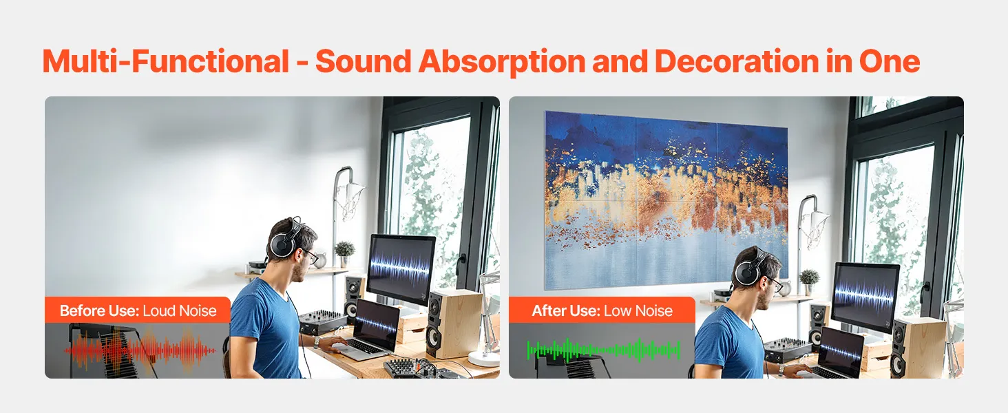 Questo pannello acustico multifunzionale non solo riduce efficacemente il rumore, ma migliora anche l'estetica del tuo spazio, migliorando la tua qualità di vita.