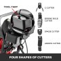Quattro taglierine per uso diverso. Fresa per tagliare e raschiare. Taglierina a bulbo noioso per rimuovere oggetti sciolti. Taglierina a C funziona bene con blocchi di grasso e pulizia della parete del tubo. Spade taglierine utilizzato per raschiare i bordi interni dei tubi. Un piccolo portautensili progettato sul telaio per una comoda conservazione e cambio degli utensili.