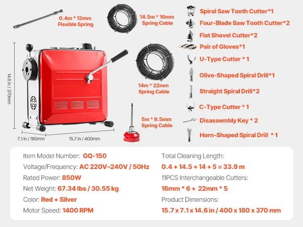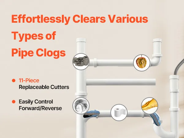 Stanco di scarichi intasati, costosi interventi idraulici e pulizie incomplete? Di' addio ai problemi di manutenzione degli scarichi. Lascia che la macchina elettrica per la pulizia degli scarichi con 11 lame risolva i tuoi problemi di intasamento in una sola volta.