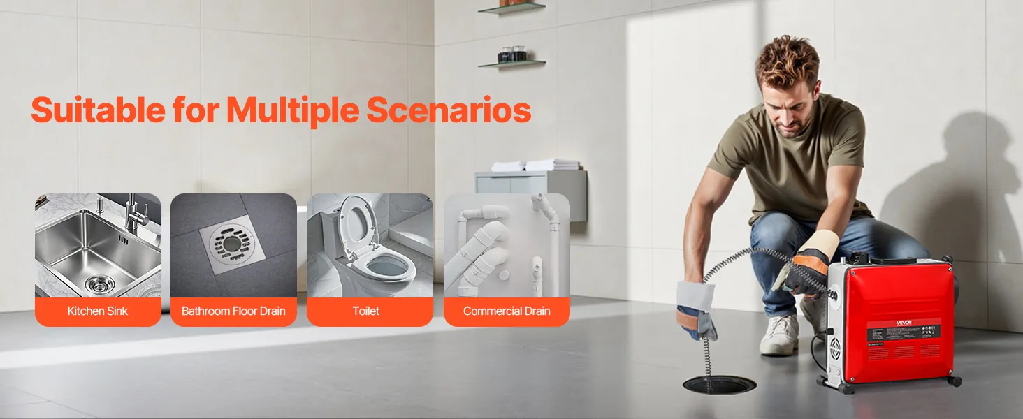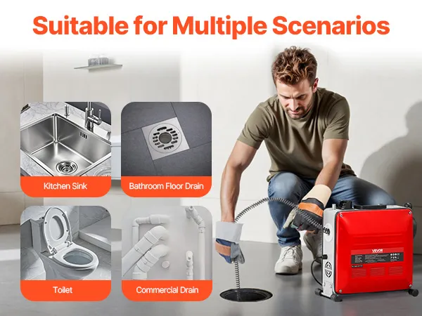 Utilizzo multifunzionale: questo pulitore elettrico per scarichi fognari è adatto per l'uso in lavandini, docce, fognature, servizi igienici, bagni, cucine e scarichi a pavimento, offrendo soluzioni versatili per un'ampia gamma di applicazioni