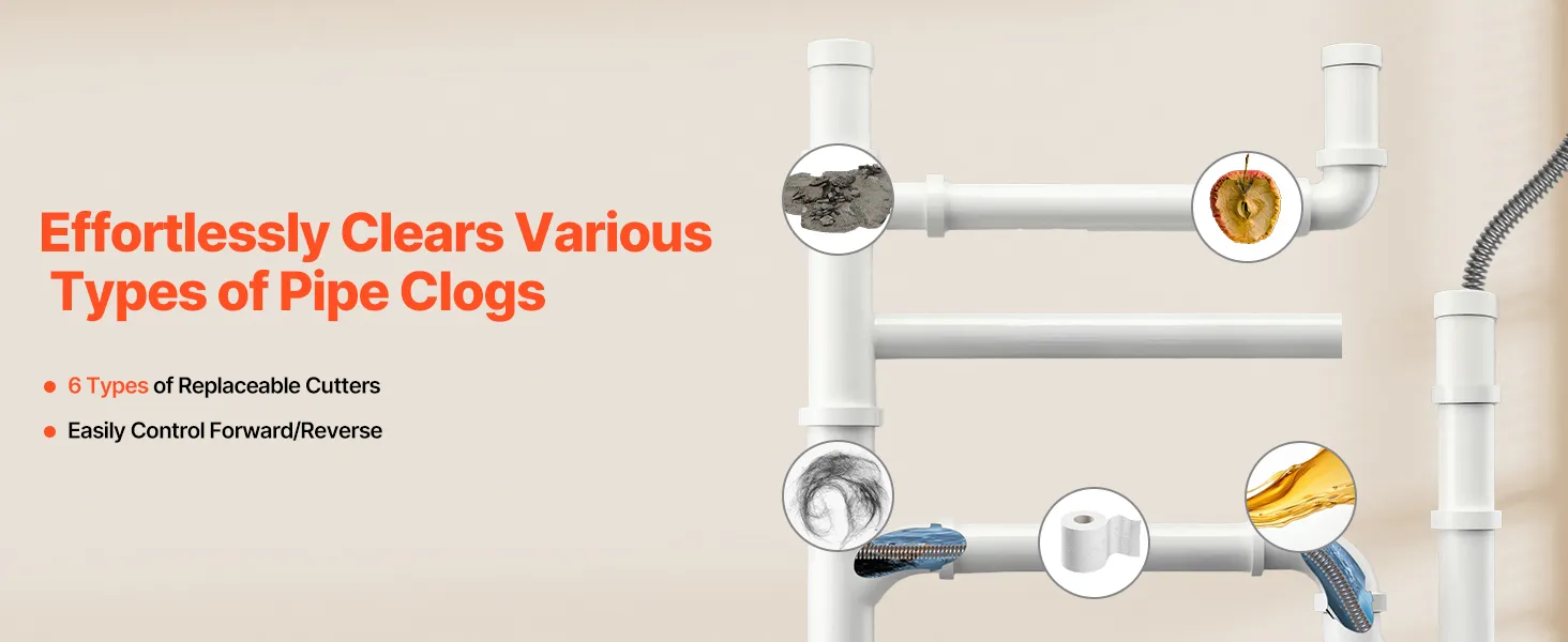 Stanco di scarichi intasati, costosi interventi idraulici e pulizie incomplete? Di' addio ai problemi di manutenzione degli scarichi! Lascia che la macchina elettrica per la pulizia degli scarichi a 6 lame risolva i tuoi problemi di intasamento in una sola volta.